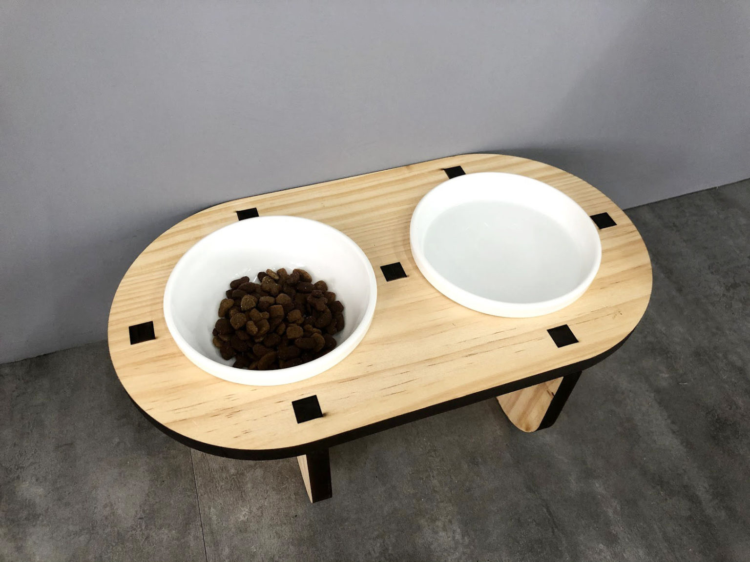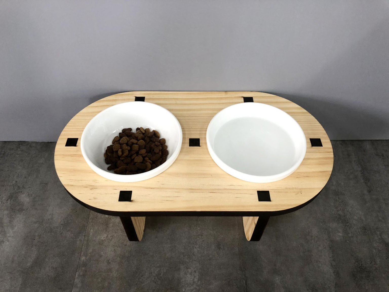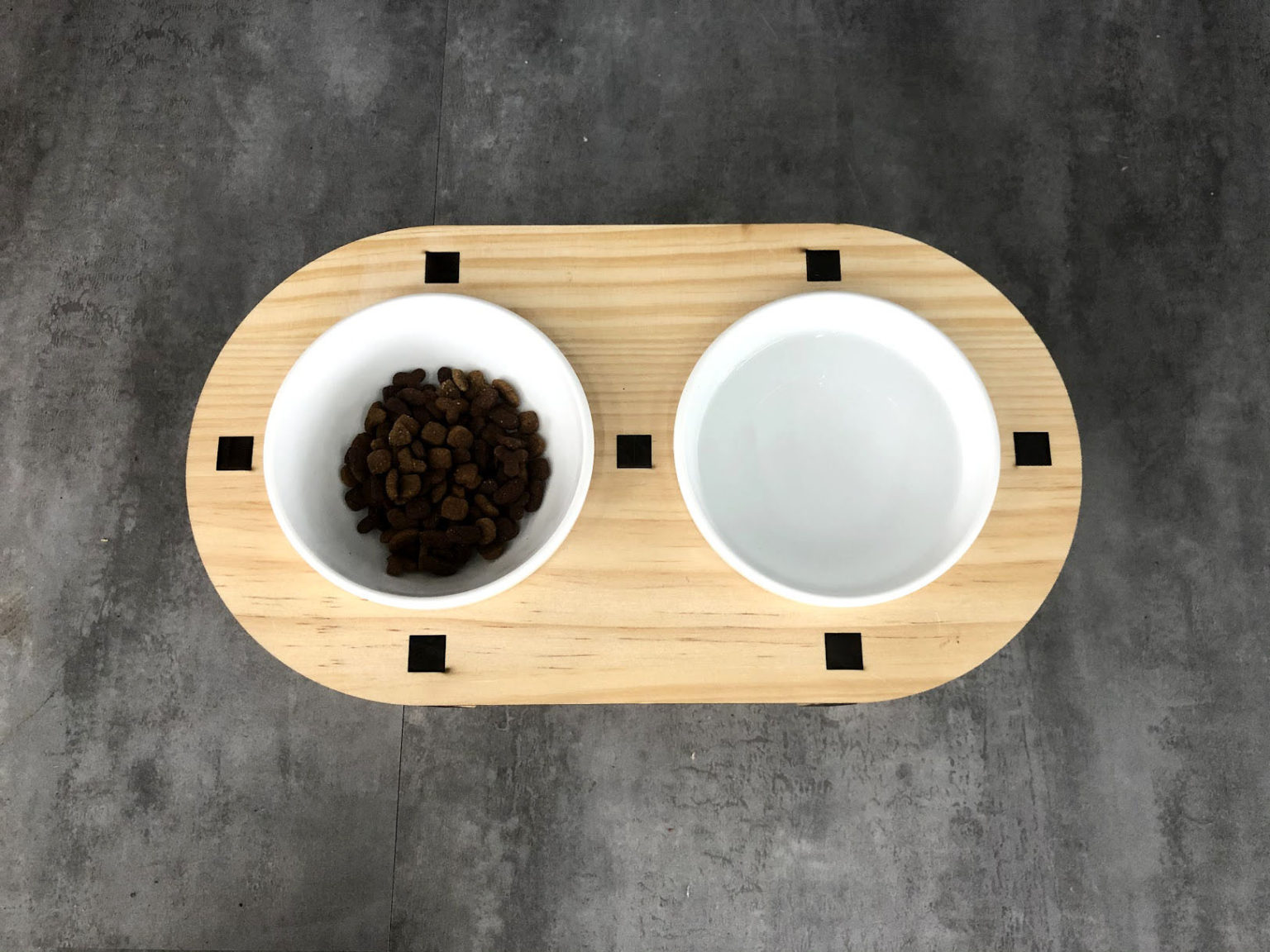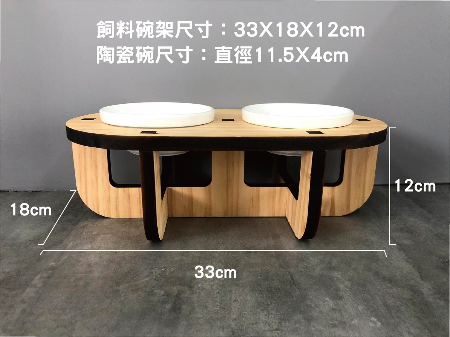材質:松木12mm 飼料碗架尺寸︰長33X寬18X高12cm 陶瓷碗尺寸︰直徑11.5X深4cm