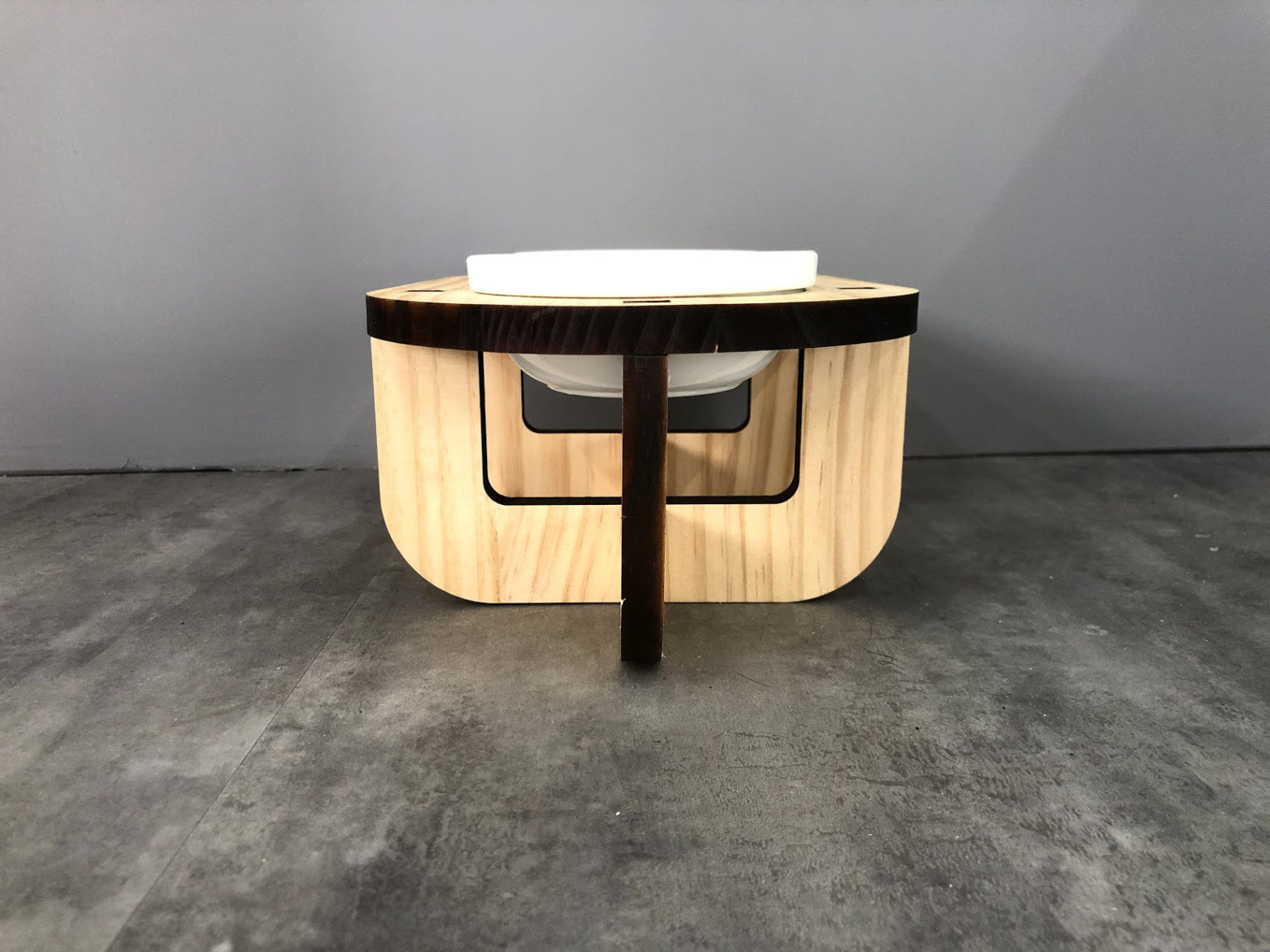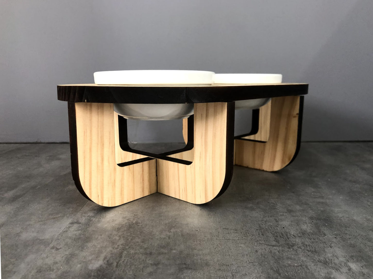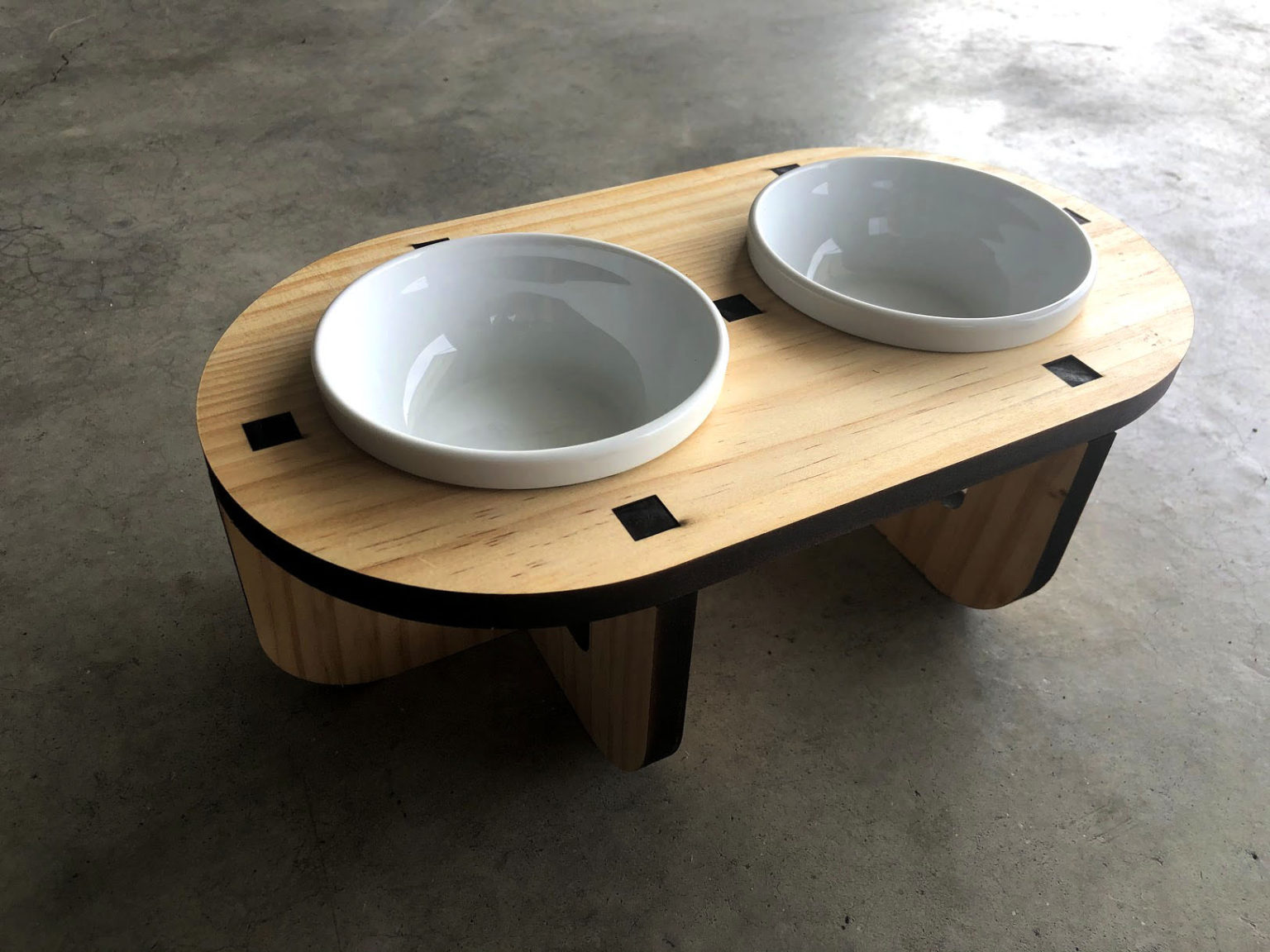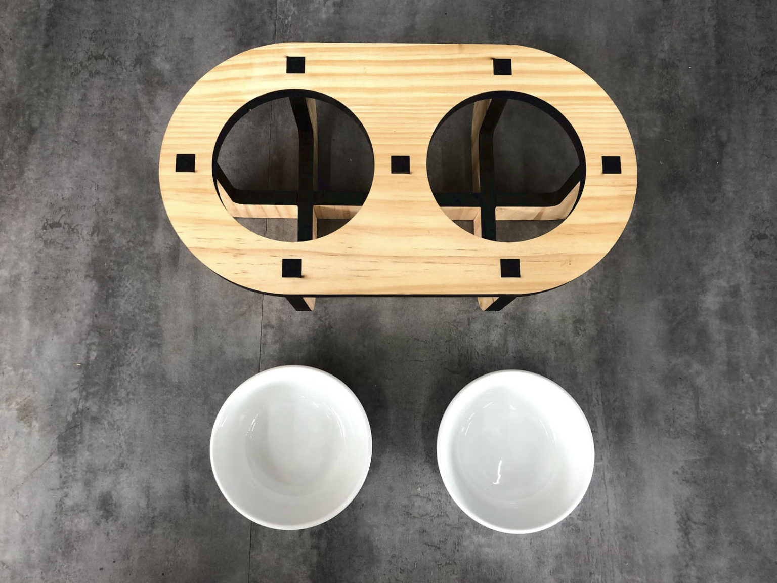 產品特色 1.整體全實木 2.採用圓角造型+卡榫結構 3.量大可雷射雕刻店名 4.量大可客製化造型,以及多碗多寵物造型