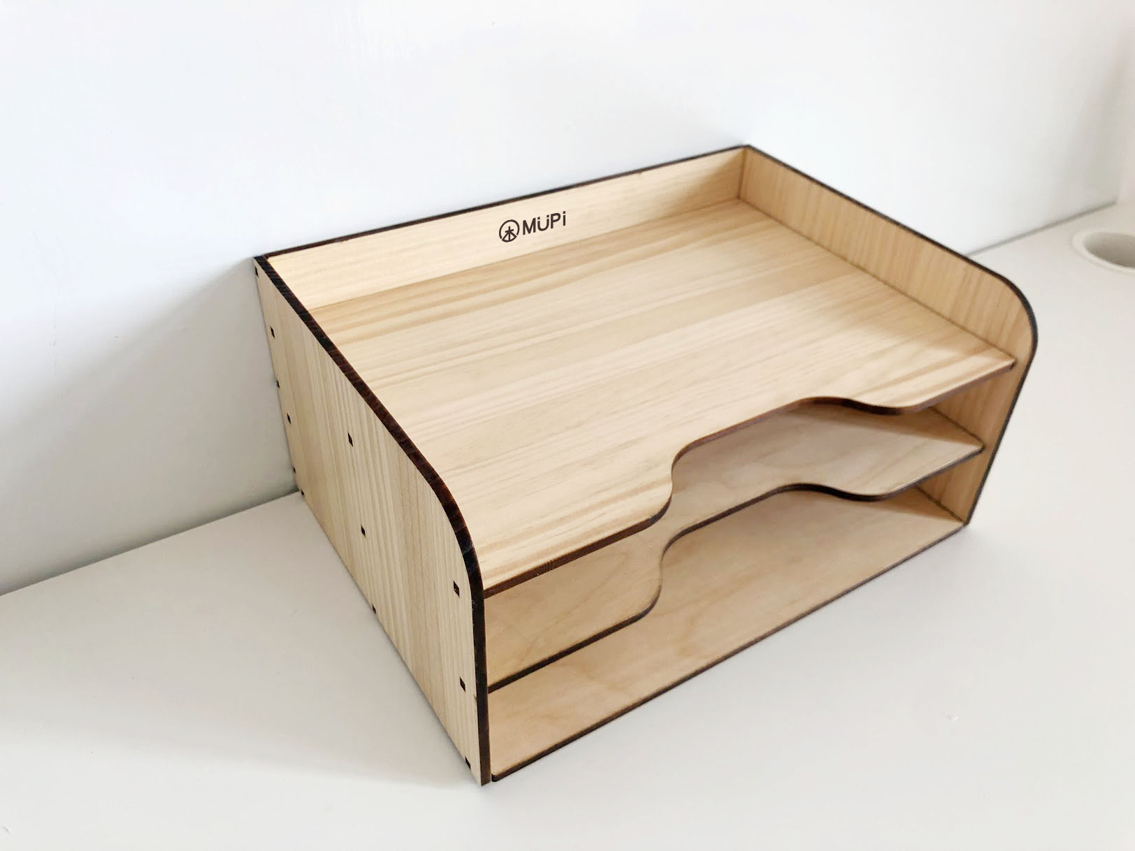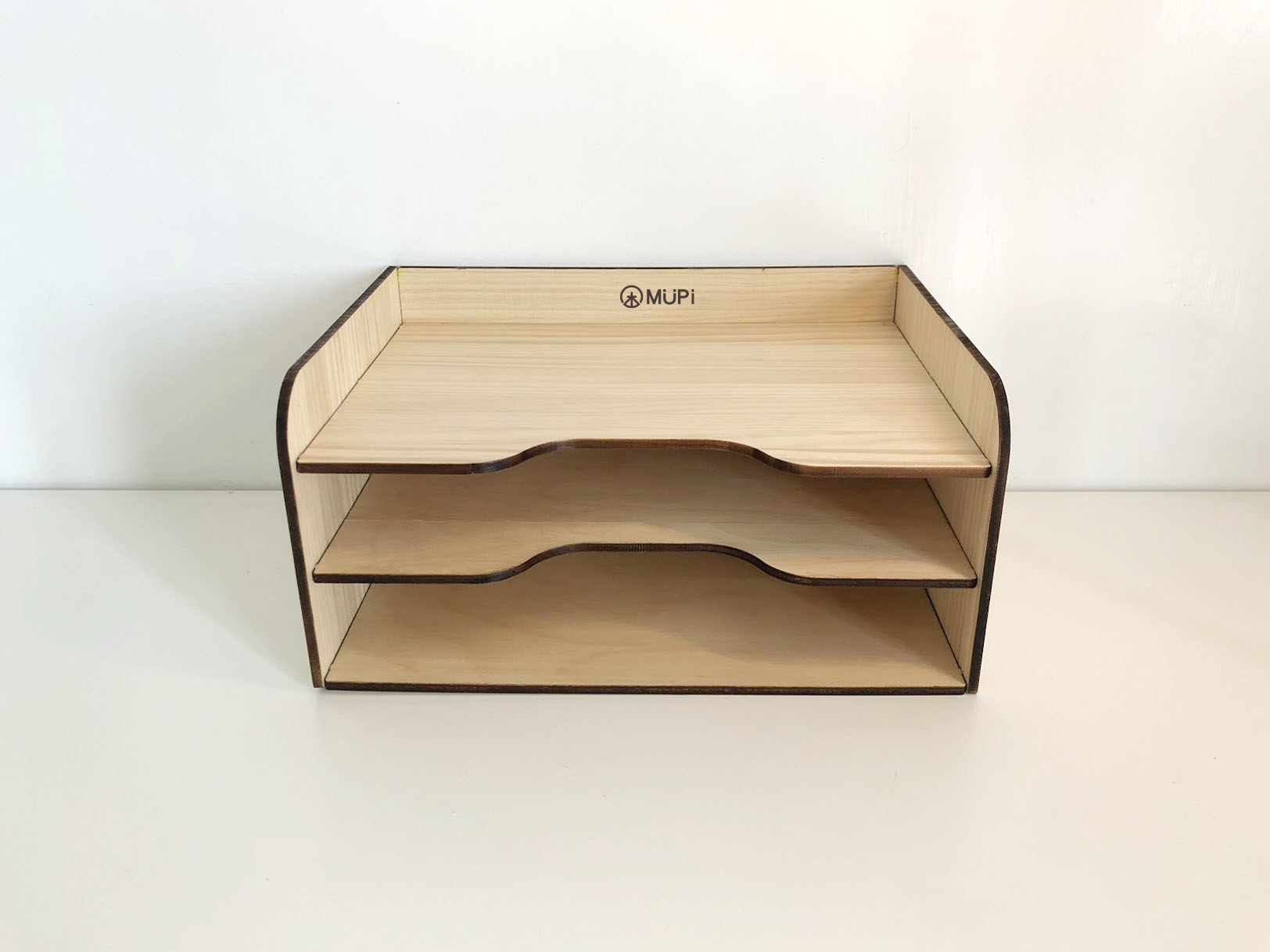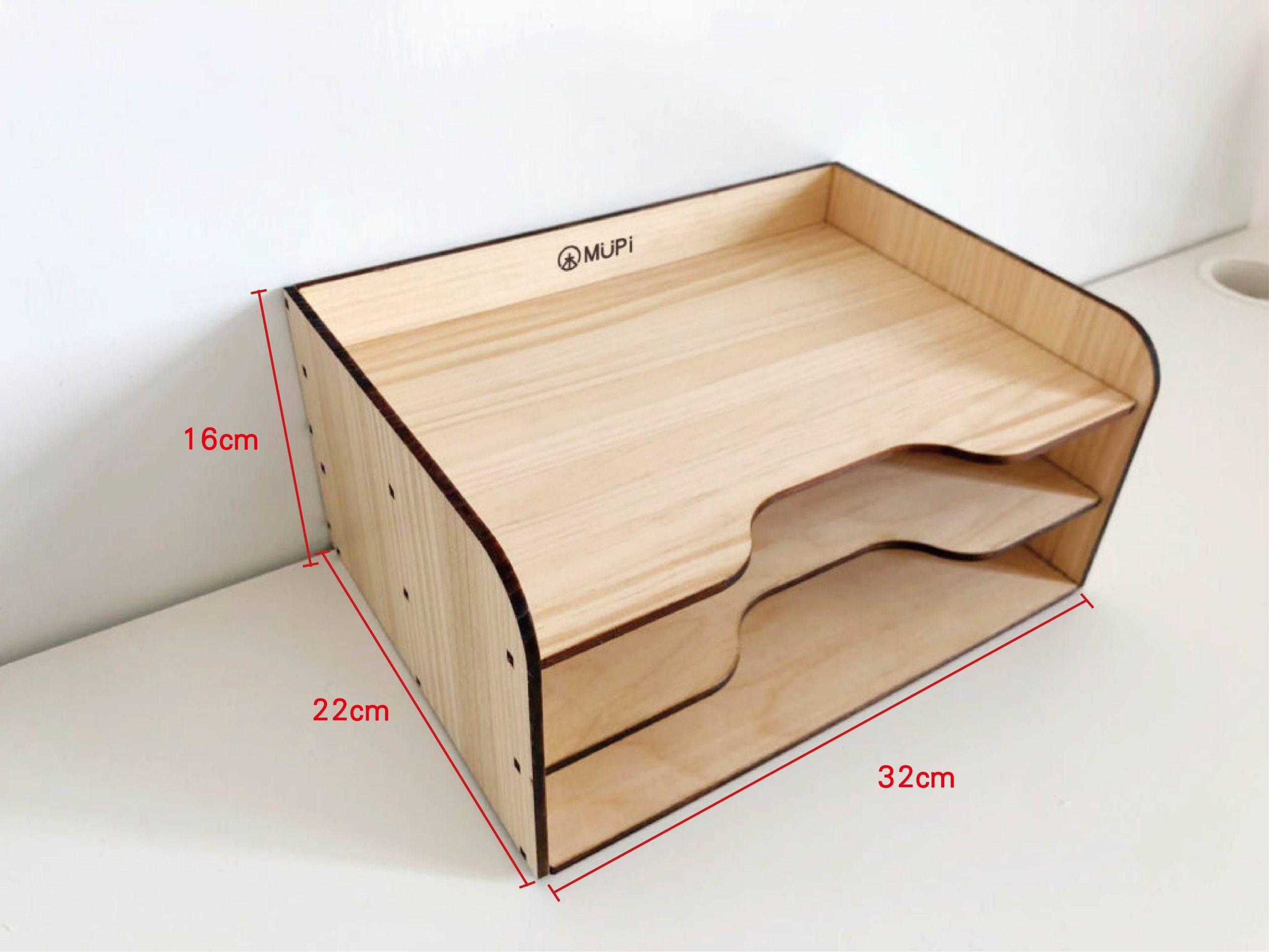 MUPi圓角實木A4文件架 產品特色 1.適合辦公室、書桌、工作室…等 2.上方可放公仔,或化妝用品等雜物 3.飲料店櫃台的宣傳單也可放置 材質:松木(實木)5mm+內層白俄椴木5mm 後加工:表面透明保護漆 尺寸:長32X寬22X高16cm