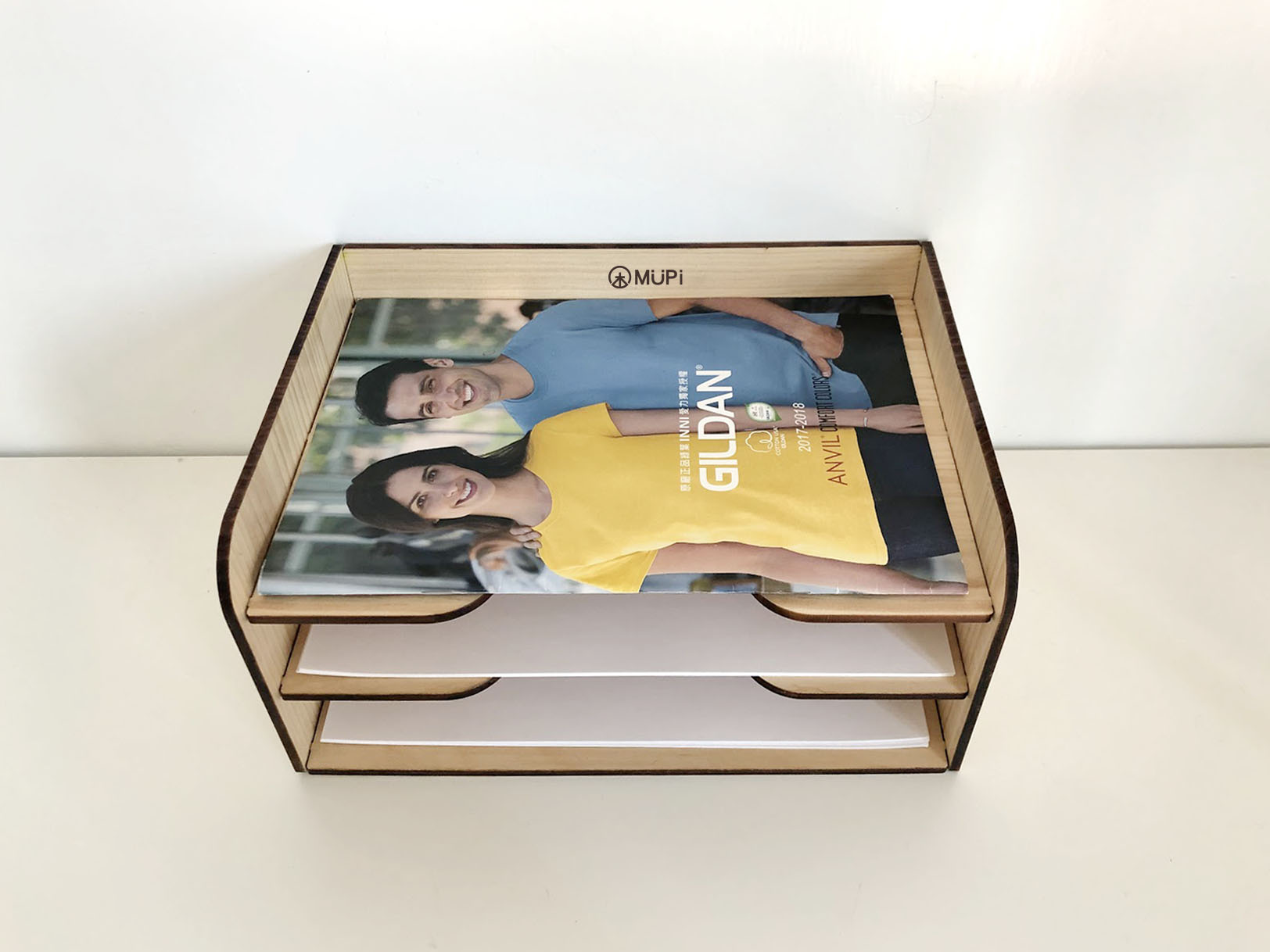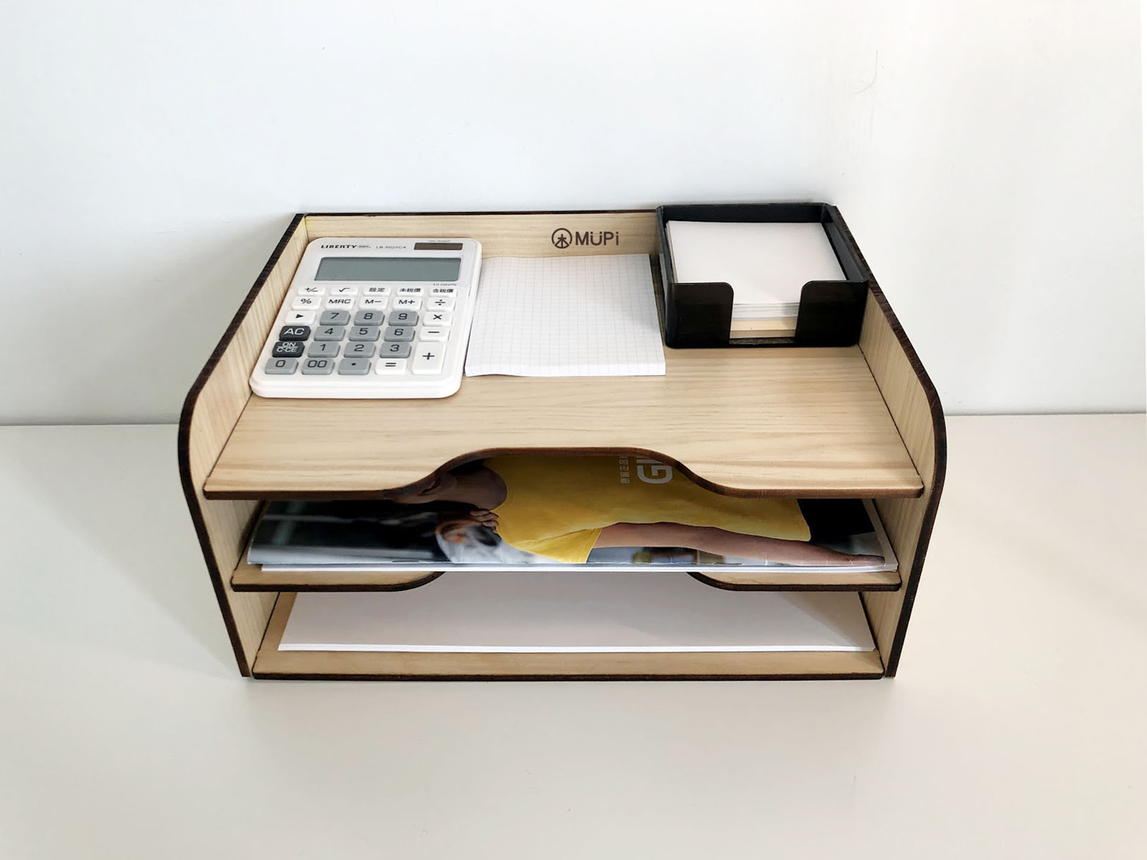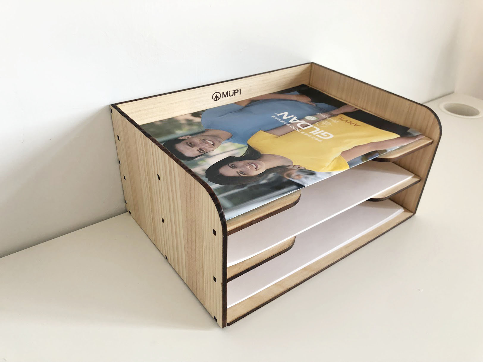 MUPi圓角實木A4文件架 產品特色 1.適合辦公室、書桌、工作室…等 2.上方可放公仔,或化妝用品等雜物 3.飲料店櫃台的宣傳單也可放置 材質:松木(實木)5mm+內層白俄椴木5mm 後加工:表面透明保護漆 尺寸:長32X寬22X高16cm